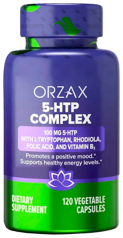 Orzax 5-HTP Complex - это мощная комбинация 5-гидрокситриптофана, L-триптофана, родиолы, витамина B2 и фолиевой кислоты.