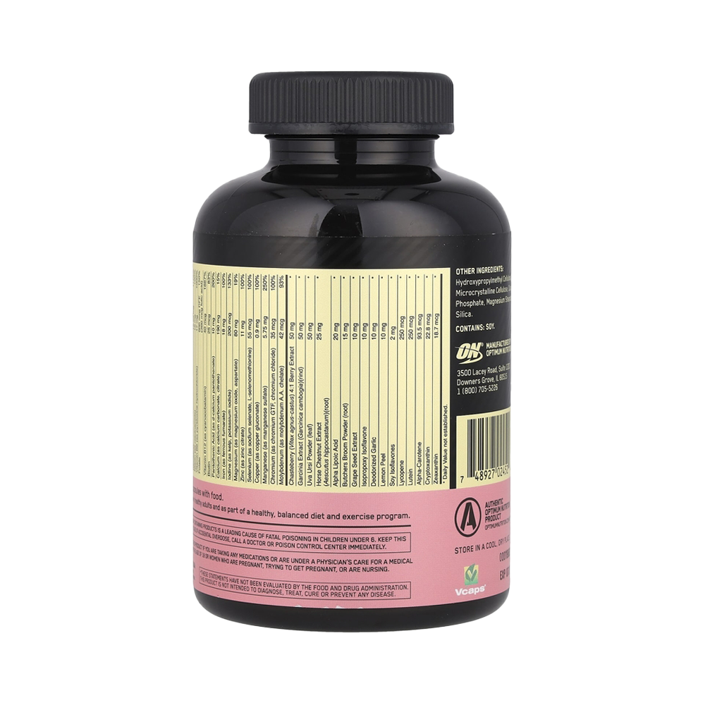 OPTI-WOMEN — это не простые мультивитамины. Это система оптимизации питательных веществ, содержащая 40 активных ингредиентов, включая 23 витамина и минерала, предназначенных для удовлетворения потребностей активных женщин в питательных веществах. Каждая порция обеспечивает эффективную питательную поддержку и состоит из 2 капсул Vcaps, одобренных Вегетарианским обществом.